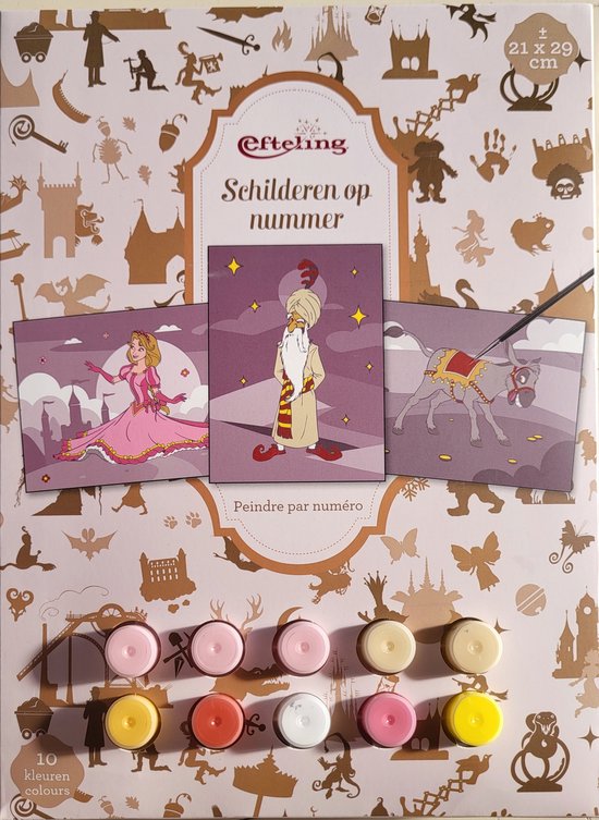 Schilderen op nummer met 3 platen van de Efteling, verf en kwastje zijn inbegrepen